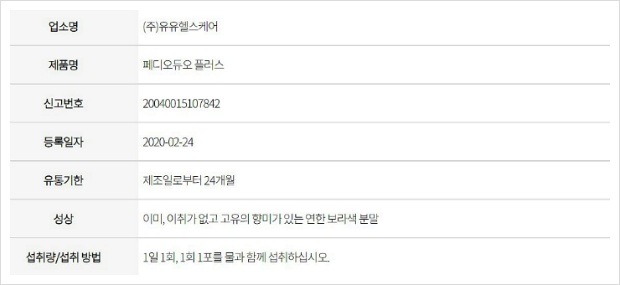 페디오듀오 플러스 효능 부작용 섭취방법 안내