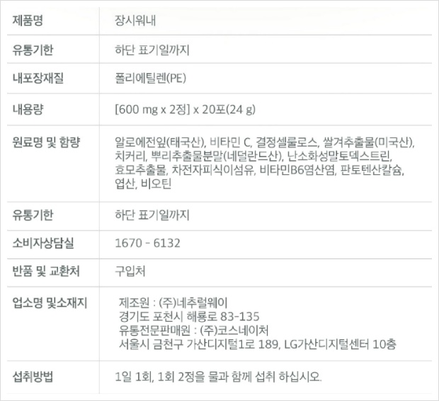장시워내 제품정보 효능 부작용