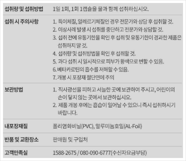 7. 이상증상이 생길 경우 섭취를 중단하고, 전문의와 상담하시거나 고객상담실로 문의하시기 바랍니다.