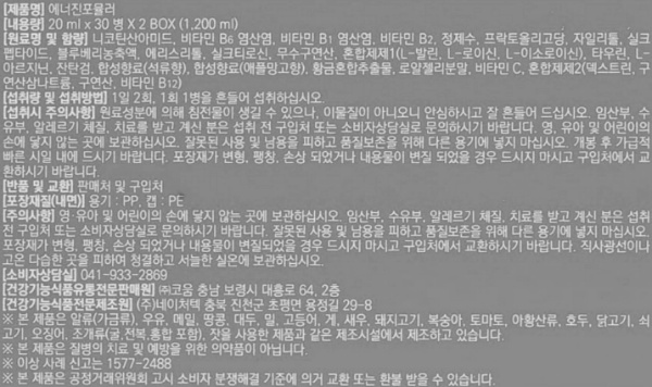 3. 섭취자의 신체상태에 따라 특이반응이 나타날 수 있습니다. 이 경우 섭취를 중단하신 후 구입처로 문의하시기 바랍니다.