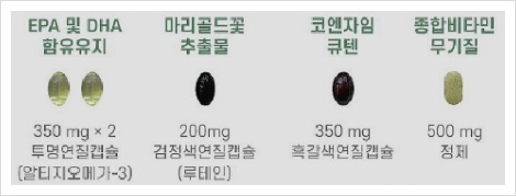 (정제 500mg 1EA, 연질캡슐1(투명) 350mg 2EA, 연질캡슐2(흑갈색) 350mg 1EA, 연질캡슐3(검은색) 200mg 1EA)