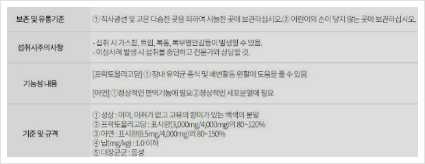 2. 이상사례 발생 시 섭취를 중단하고 전문가와 상담할 것.