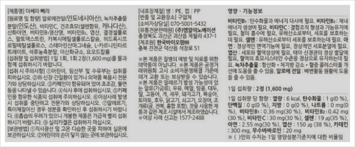 1. 어린이, 임산부 및 수유부는 섭취를 피하십시오.