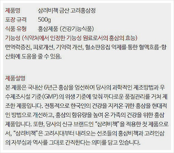 제품명: 삼려비책 금산고려홍삼정