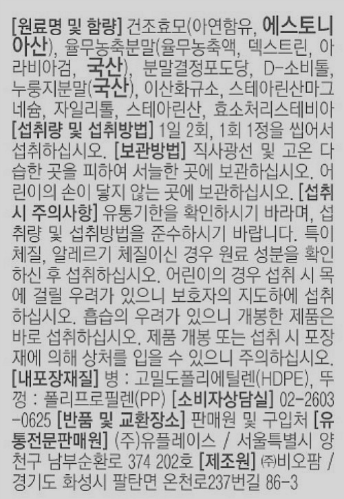 2. 어린이의 경우 섭취 시 목에 걸릴 우려가 있으니 보호자의 지도하에 섭취히십시오.