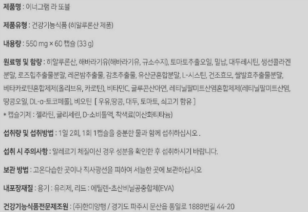 알레르기 체질이신 경우 성분을 확인 한 후 섭취하시기 바랍니다.