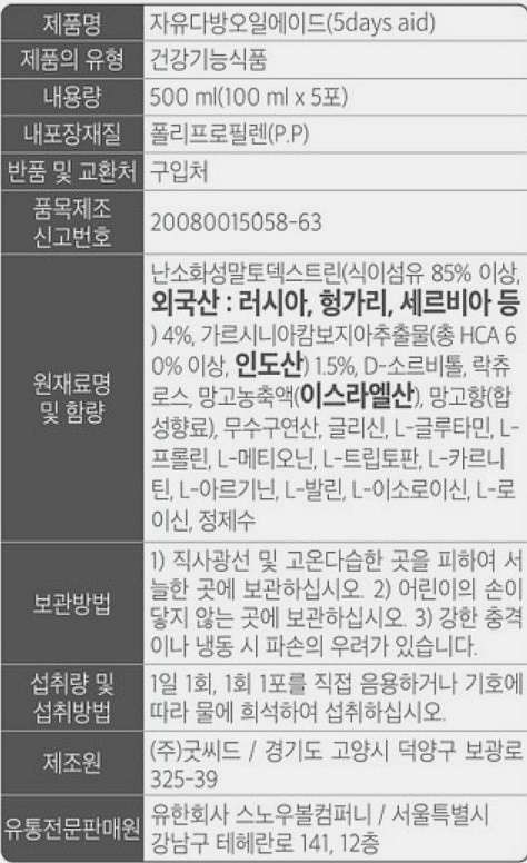 4. 어린이, 임산부 및 수유부는 섭취를 피하시기 바랍니다.