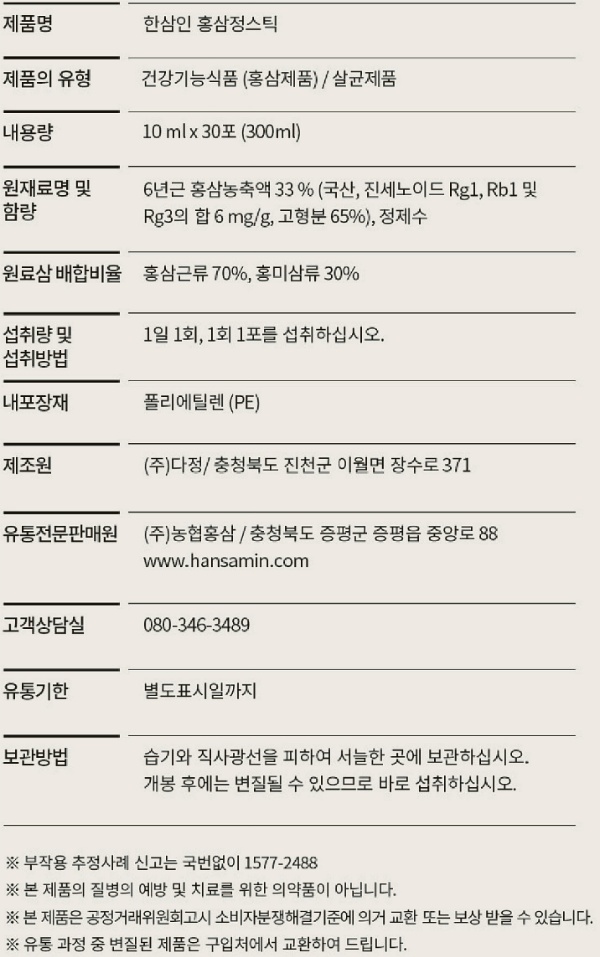 제품명 : 한삼인 홍삼정스틱