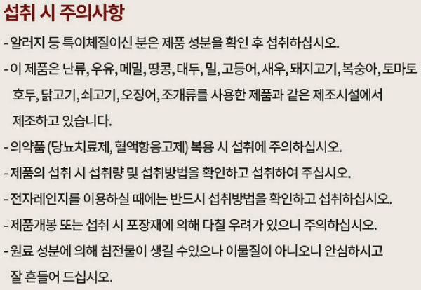 알러지 등 특이체질이신 분은 제품성분을 확인 후 섭취하시기 바랍니다
