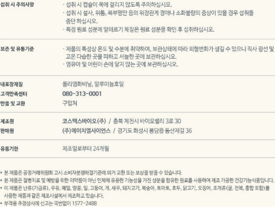 3. 개인의 신체 상태에 따라 이상 증상이 생길 경우 섭취를 중단하십시오.