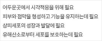 1. 어두운 곳에서 시각 적응을 위해 필요