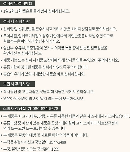 3. 특정성분에 민감한 체질이신 분은 원료성분을 확인하신 후 섭취하시기 바랍니다.