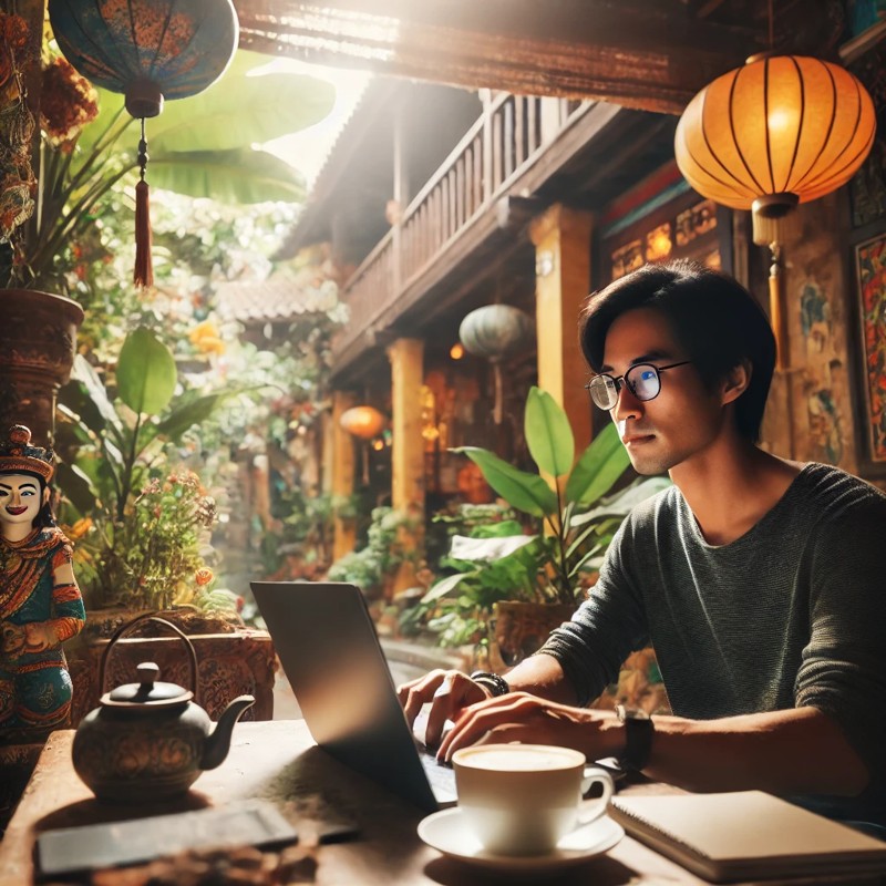 ✔ 설명: 인터넷을 통해 장소에 구애받지 않고 일하는 ‘디지털 노마드’ 방식이 베트남에서도 가장 현실적인 옵션입니다.