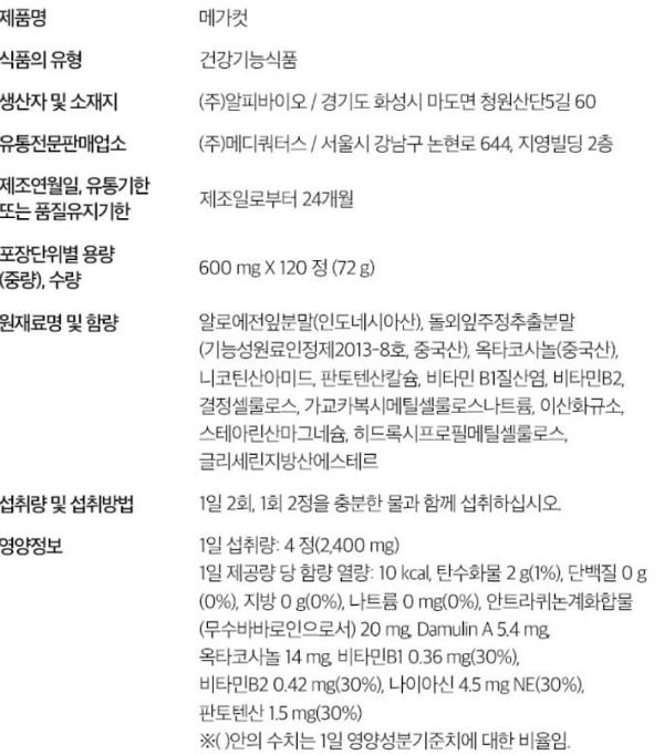 메가컷 효능 부작용 섭취방법